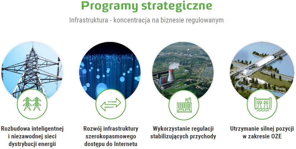Oprócz wdrożenia nowych produktów, w strategii są też przedstawione ambitne cele inwestycyjne nakierowane na rozwój nowoczesnej infrastruktury energetycznej. Wymagają one dużych nakładów inwestycyjnych. Spółka zakłada ich przeprowadzenie z zachowaniem bezpieczeństwa finansowego.