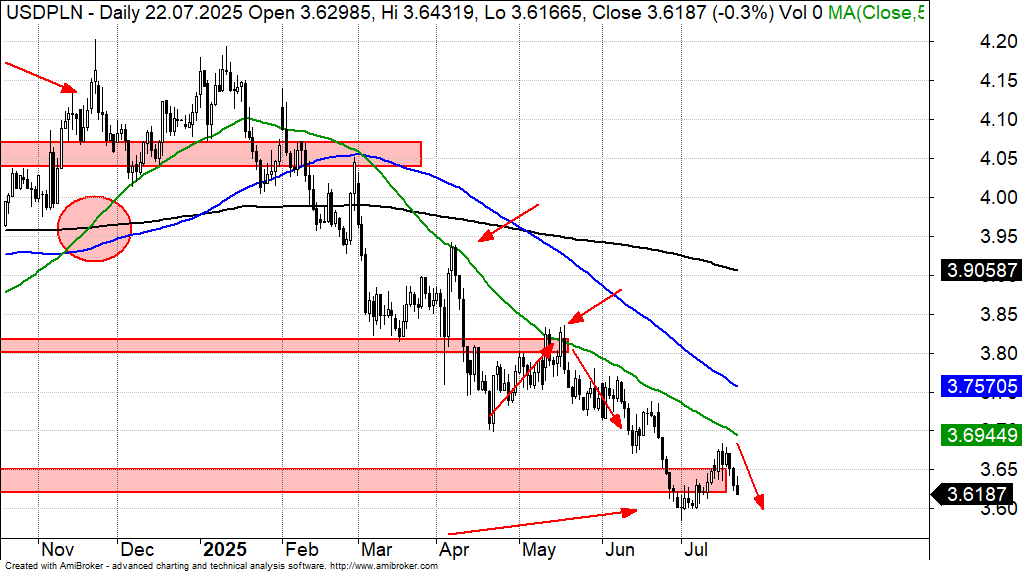 Dolar wraca do spadków