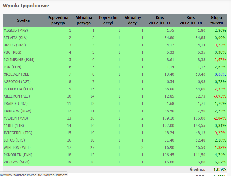 - Co tydzień w środę komentarz w blogu opisujący sytuację rynkową okiem Siły Relatywnej, pozwalający prowadzić portfel z użyciem tej strategii inwestowania.