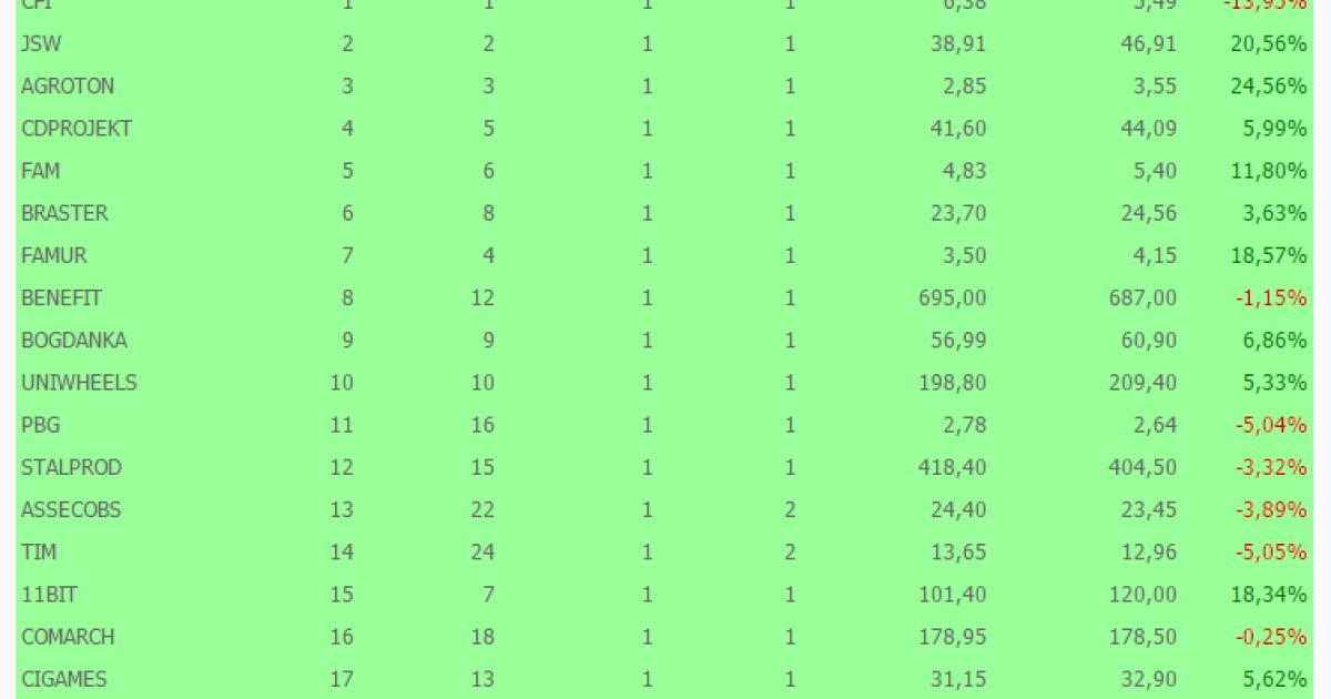 - Co tydzień w środę komentarz w blogu opisujący sytuację rynkową okiem Siły Relatywnej, pozwalający prowadzić portfel z użyciem tej strategii inwestowania.