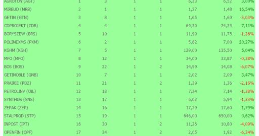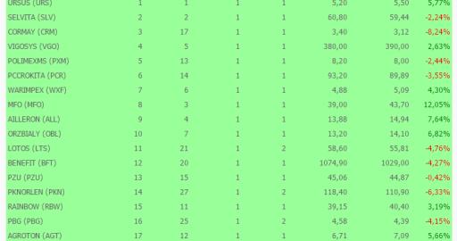 - Co tydzień w środę komentarz w blogu opisujący sytuację rynkową okiem Siły Relatywnej, pozwalający prowadzić portfel z użyciem tej strategii inwestowania.