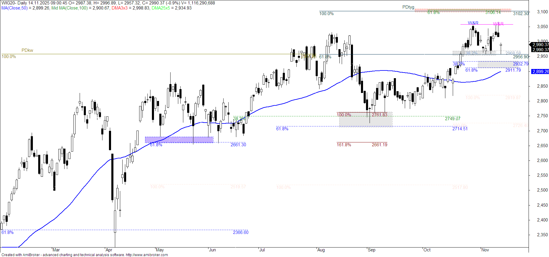 W poszukiwaniu sygnałów - 15 listopada 2025 -Luka bessy na indeksach GPW z testem wsparcia dziennego