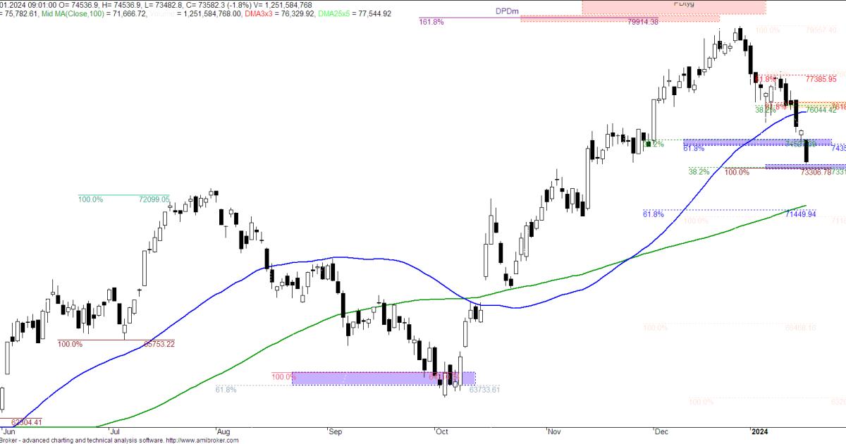 W poszukiwaniu sygnałów - 17 stycznia 2024 - Duże indeksy dochodzą do niższych wsparć.