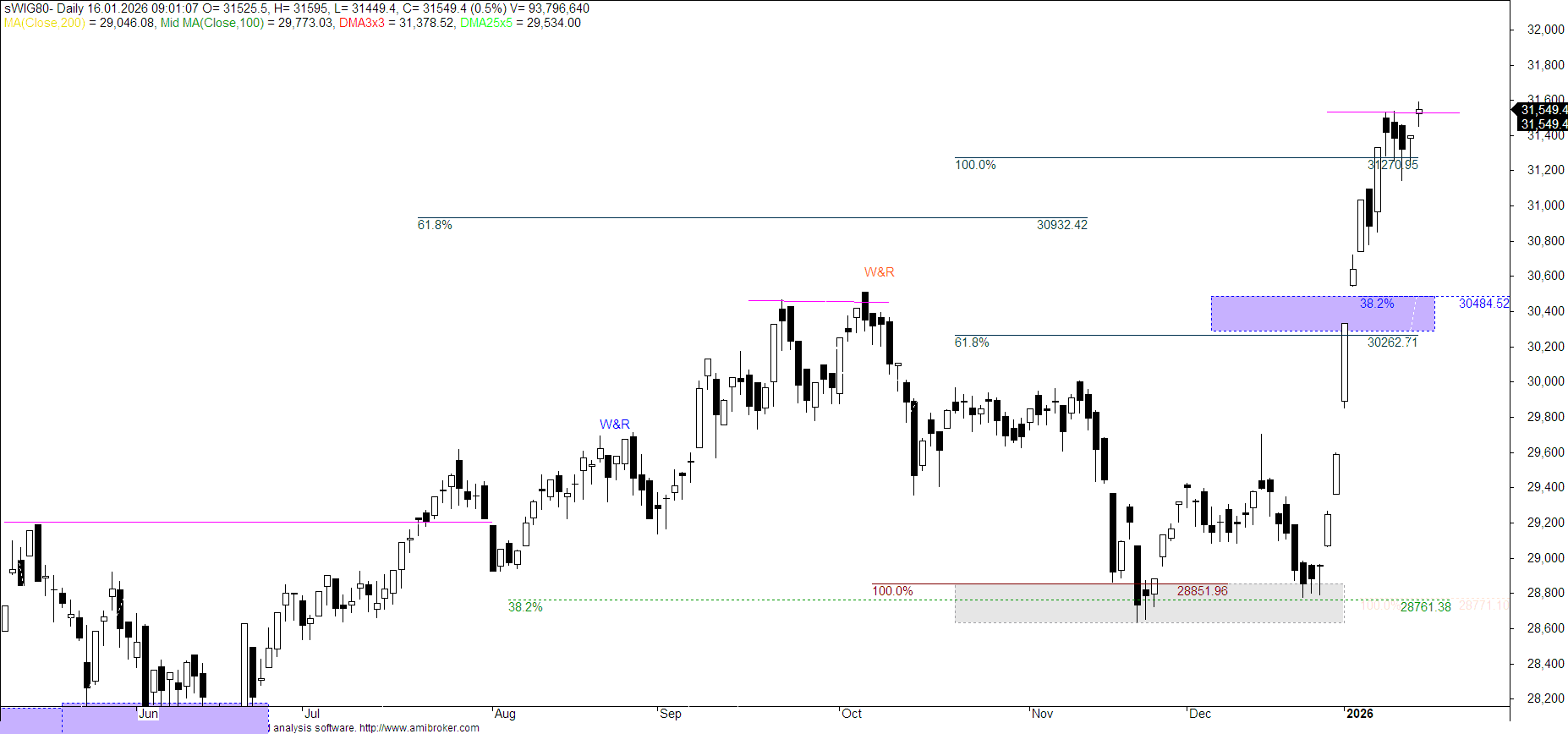 W poszukiwaniu sygnałów - 17 stycznia 2026 -Próba ataku byków na SWIG80, na dużych indeksach trwa konsolidacja dzienna.
