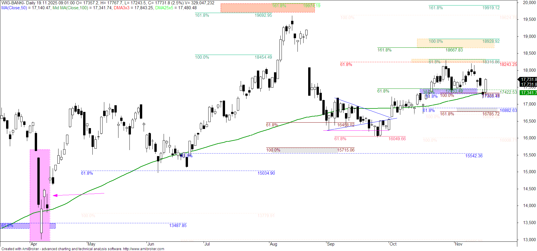 W poszukiwaniu sygnałów 19 listopada 2025 - WIG20 i WIGBanki utrzymują się w tygodniowym trendzie wzrostowym