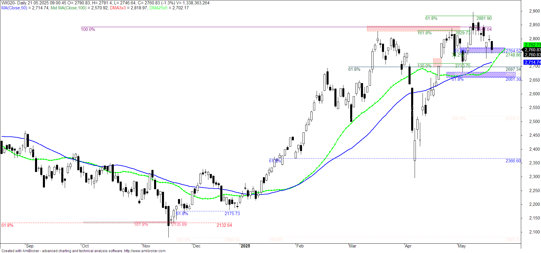 W poszukiwaniu sygnałów 21 maja 2025 - WIG20 na wsparciu. Słabość na GPW