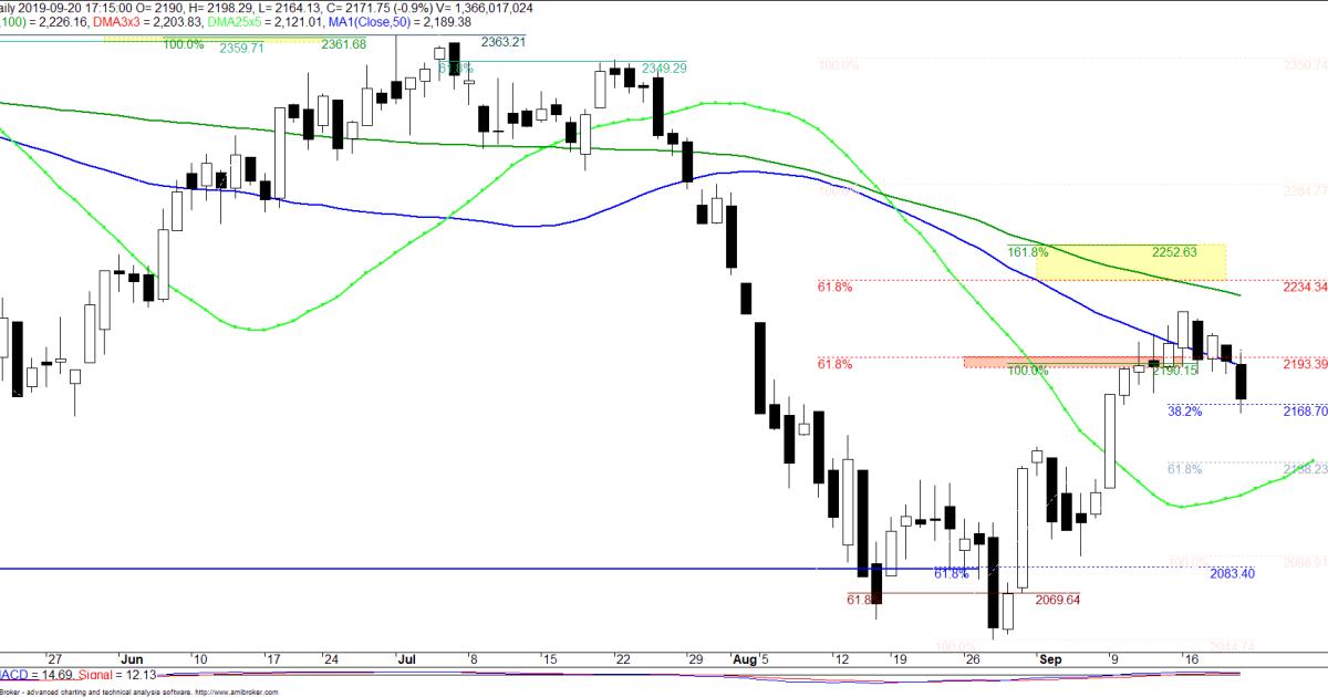 W poszukiwaniu sygnałów - 21 września 2019 Wybicie w dół z konsolidacji dziennej z dojściem do wsparć.