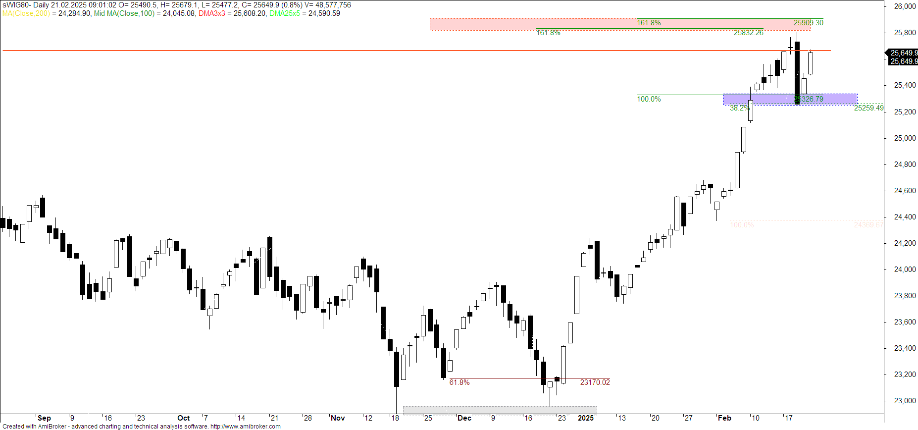 W poszukiwaniu sygnałów - 22 lutego 2025 - Indeksy GPW walczą o dzienny trend wzrostowy
