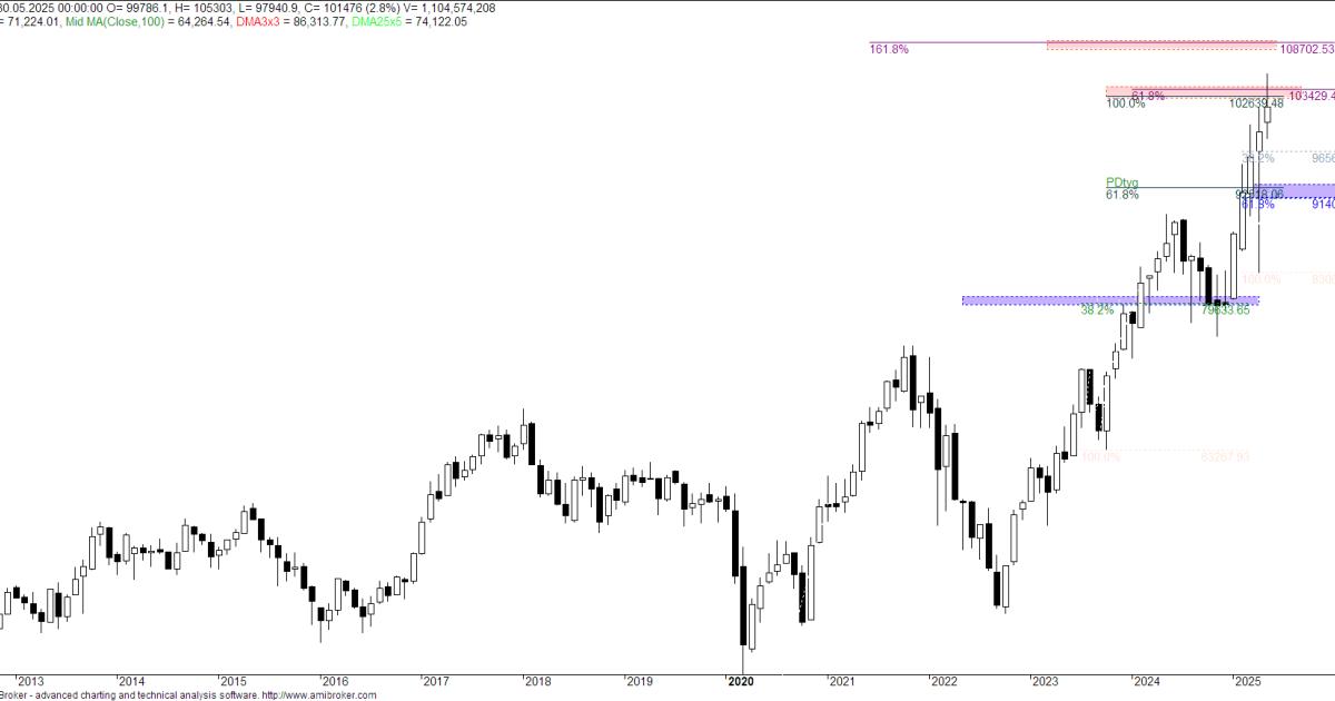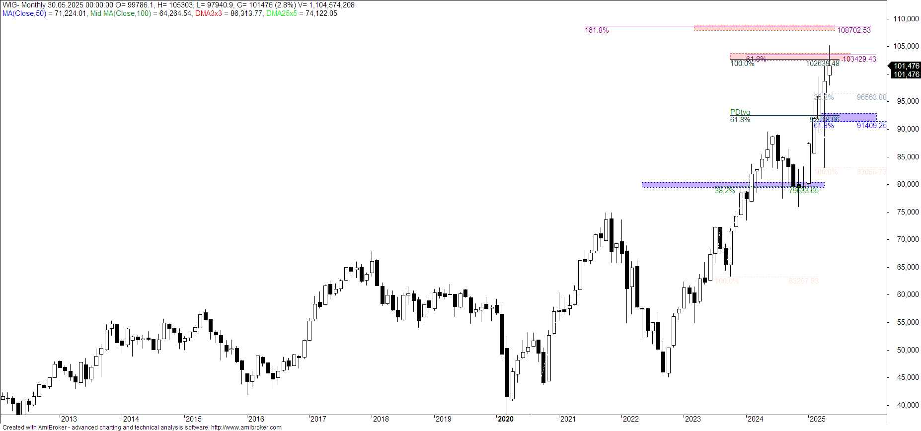 W poszukiwaniu sygnałów - 31 maja 2025 -Indeksy GPW w korekcie w trendzie spadkowym, Analiza miesięczna