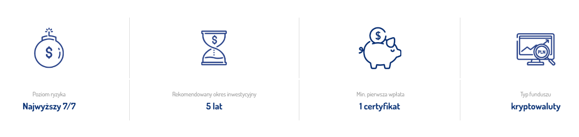 Fundusz jest pasywnym instrumentem inwestycyjnym opartym w 100% na kontraktach terminowych futures na Bitcoina, wystawianych i notowanych na giełdzie CME w Stanach Zjednoczonych. Jego celem jest jak najwierniejsze odzwierciedlenie procentowych zmian wartości wspomnianych kontraktów. Oznacza to, że inwestorzy powinni liczyć się zarówno z podobnej skali wzrostami, jak i z ryzykiem równie dużych spadków. W praktyce, inwestorzy korzystający z tego produktu podlegają pełnej zmienności charakterystycznej dla rynku kryptowalut, ale w ramach standardów regulowanego rynku kapitałowego.