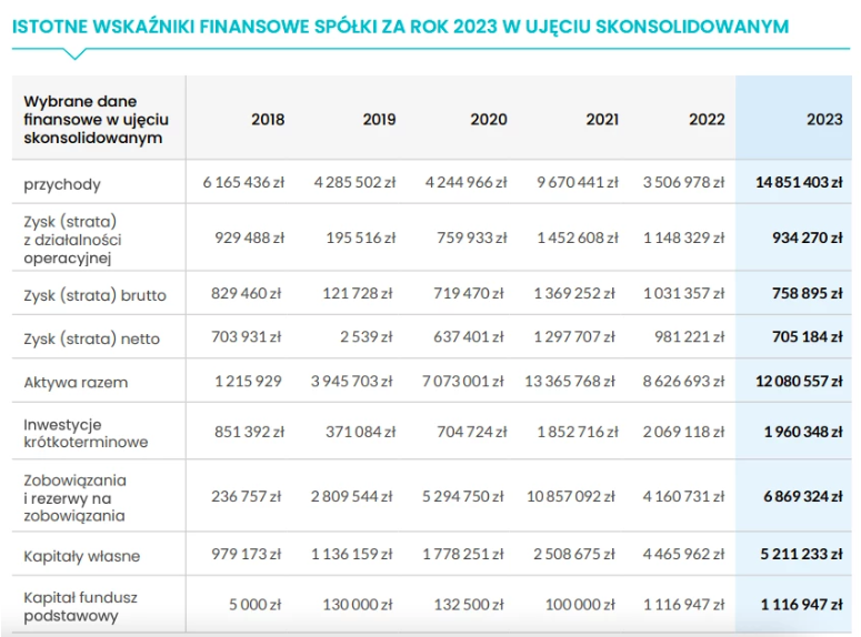 W 2023 r. firma wypracowała 14,9 mln zł przychodów, podczas gdy w 2022 r. było to 3,5 mln zł. Zysk netto zaś skurczył się z niemal 1 mln zł do 0,7 mln zł. Na koniec września 2024 r. przychody sięgały 4,7 mln zł, a strata netto opiewała na niemal 1,2 mln zł. Co ciekawe, jeszcze w tym roku Inside Park ma opublikować strategię, w której mogą zostać zawarte wypłaty dla akcjonariuszy.