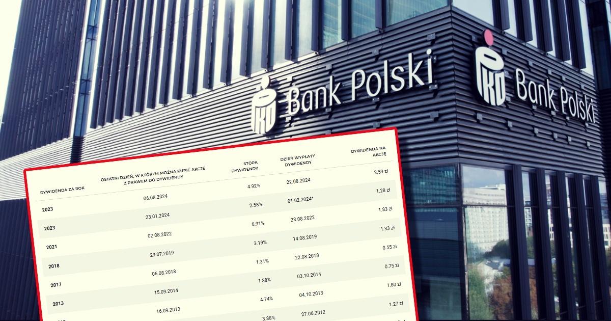 PKO BP ma imponującą historię wypłat dywidend – pierwsza trafiła do inwestorów już w połowie 2005 r. a w kolejnych latach bank corocznie dzielił się zyskiem lecz z długimi przerwami. W ostatnich latach dywidendy PKO BP rosły – w 2024 roku inwestorzy otrzymali łącznie 3,87 zł na akcję w dwóch transzach, a wcześniej – w 2023 roku.