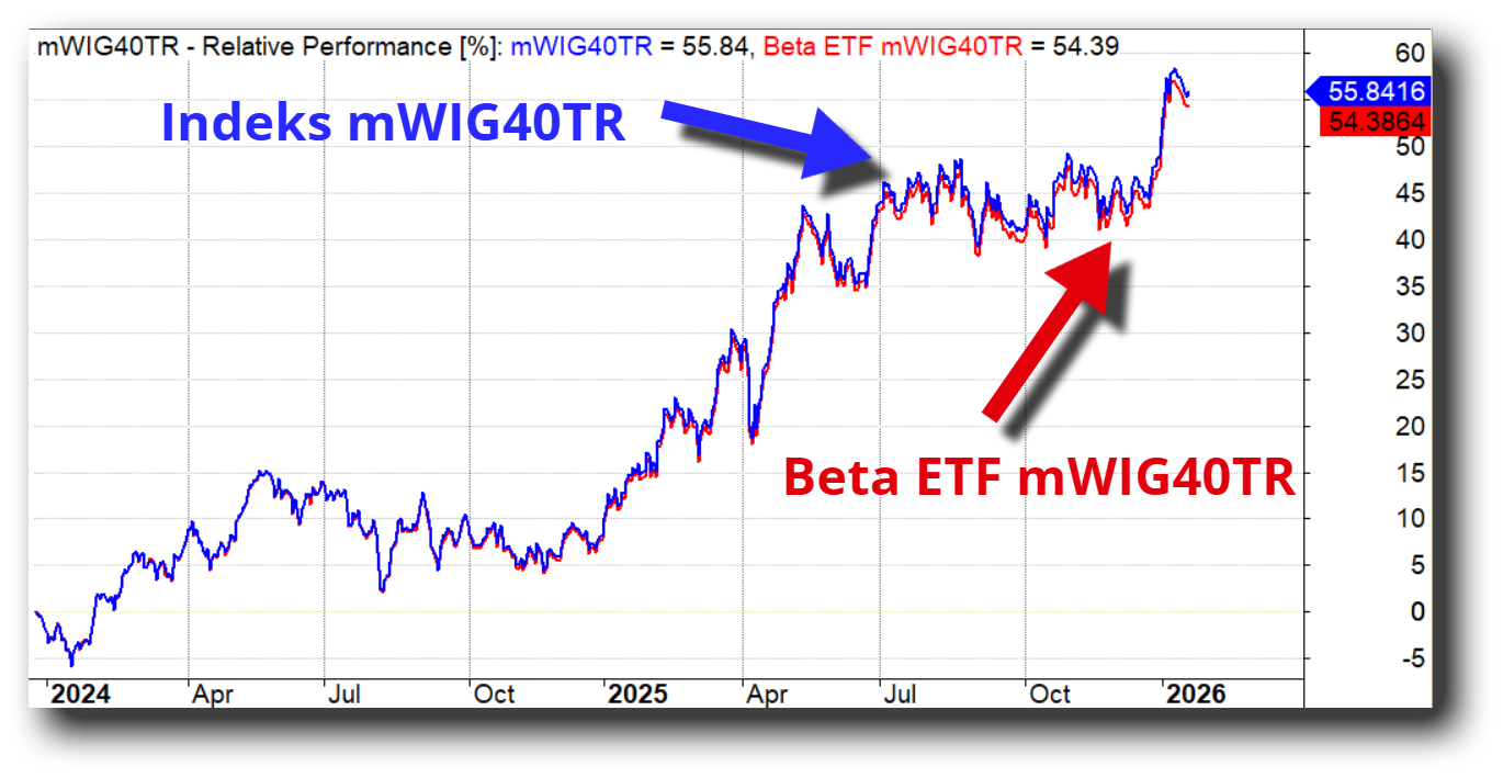 Relatywny performance mWIG40TR i Beta ETF mWIG40TR od początku 2024 roku