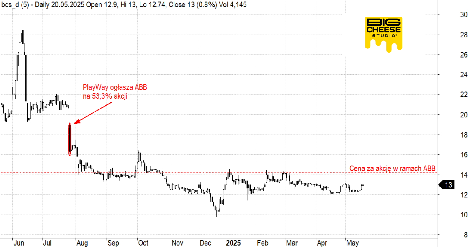 Na początku maja pakiet ponad 40% akcji giełdowego studia trafił w ręce JB Fundacji Rodzinnej. Zarząd studia podkreśla, że transakcja ma charakter techniczny, a wymieniona fundacja jest rzeczywistym nabywcą akcji Big Cheese Studio (BCS), które do sierpnia 2024 r. należały do PlayWay.