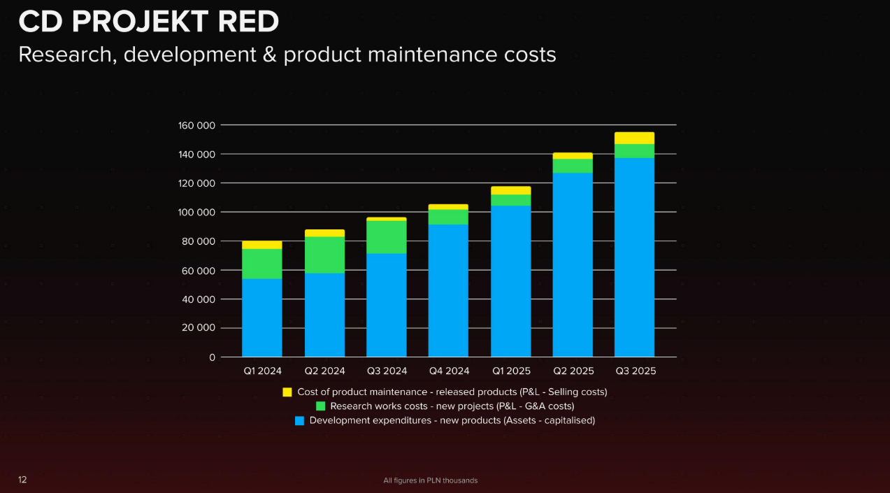 Jednocześnie CFO zadeklarował, że CD Projekt nadal zwiększa skalę inwestycji w swoje projekty, “zarówno ogłoszone, jak i nieogłoszone, opracowywane wewnętrznie lub zlecane na zewnątrz”. W III kwartale br. wydatki na inwestycje w przyszłe produkcje wyniosły 118 mln zł.