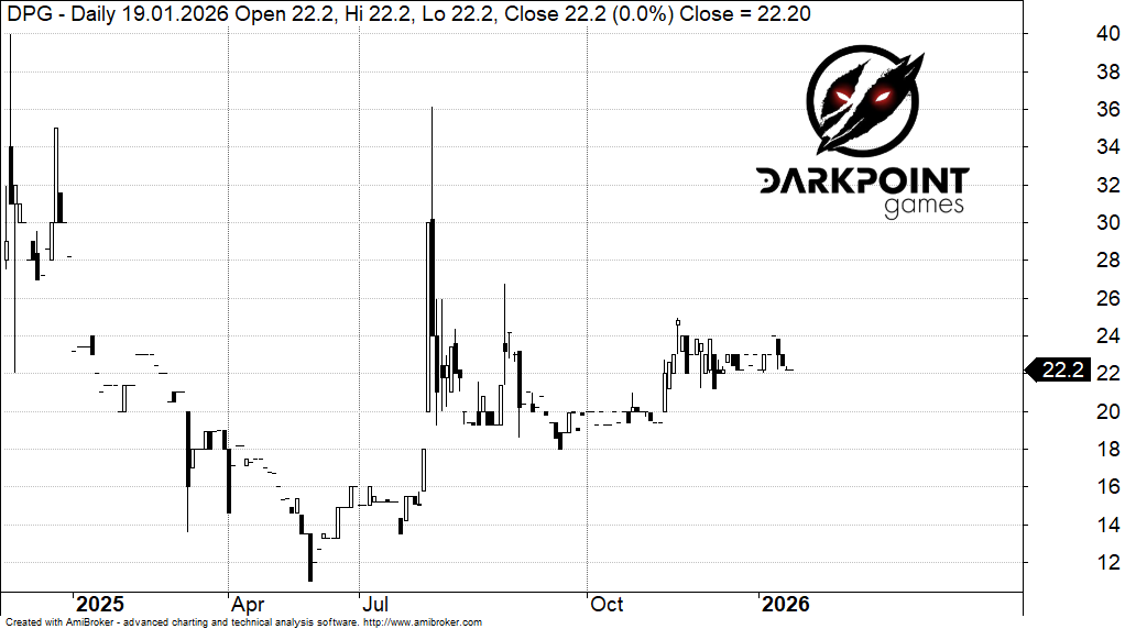 Kurs akcji Dark Point Games od debiutu na New Connect