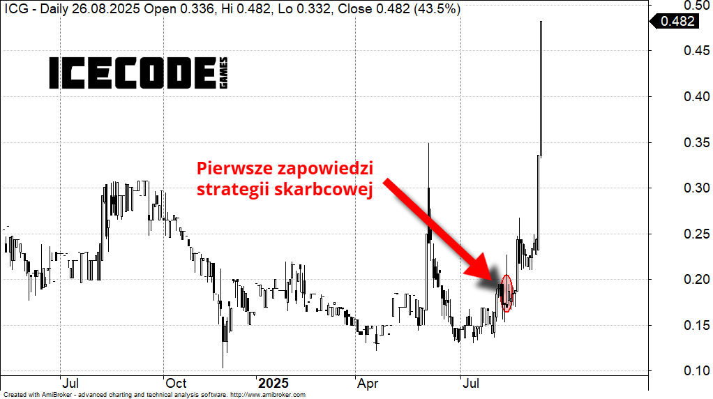 Ice Code Games (ICG) chce być „pierwszą publiczną bitcoin-treasury spółką w PL”. Proces finansowania rozpoczął się 31 lipca podpisaniem porozumienia inwestycyjnego na emisję akcji serii K o wartości ok. 4,25 mln zł (1 mln EUR), a udzielona spółce pożyczka pomostowa umożliwia już pierwsze kroki w budowaniu skarbca BTC. Zaktualizowana strategia ma wzmacniać odporność spółki na perturbacje rynkowe, dywersyfikuje jej bilans i zwiększa potencjał wzrostu wartości dla akcjonariuszy.
