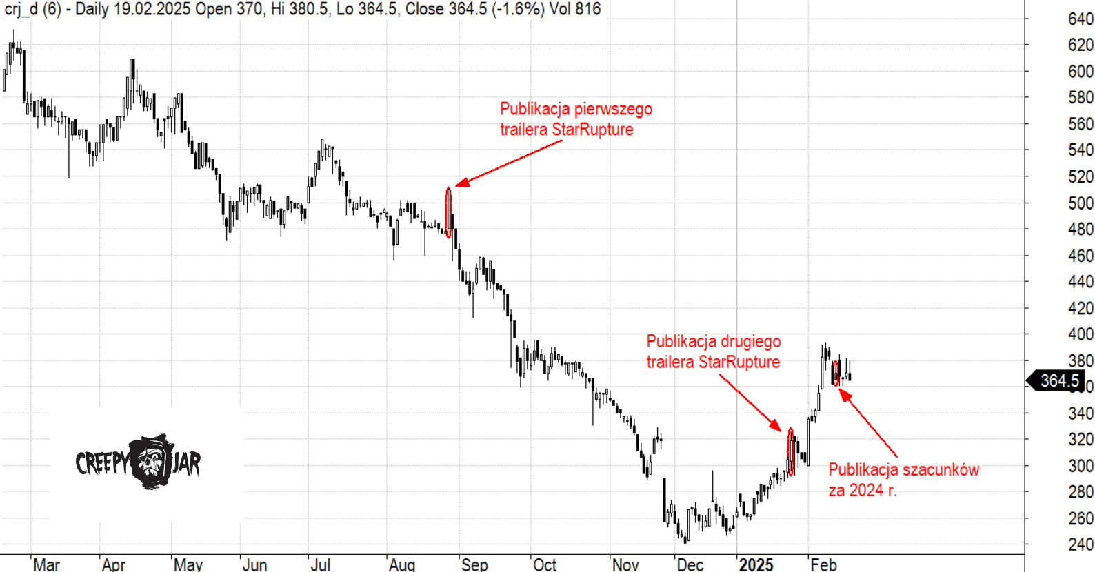 Od początku roku cena akcji Creepy Jar podskoczyła o ponad 44%. Inwestorzy coraz większe nadzieje pokładają w nowym tytule marki, który zyskuje popularność wśród graczy platformy Steam.