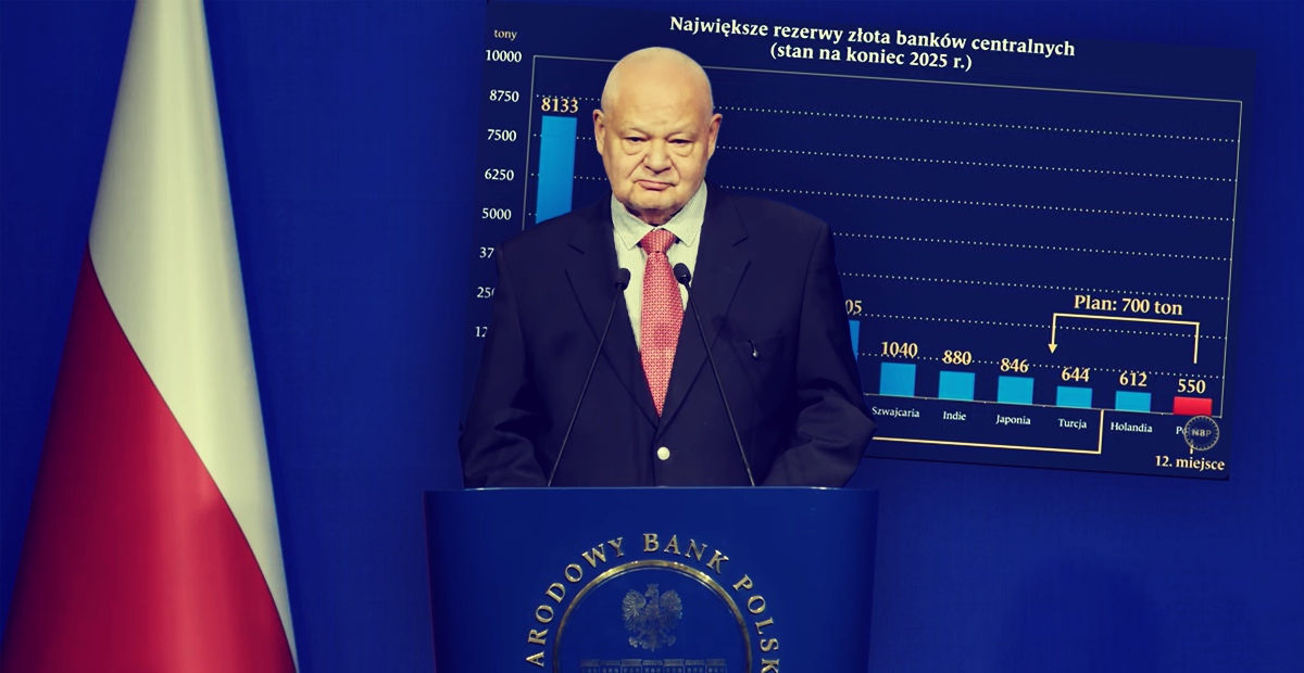 Dzień po decyzji RPP, gdzie utrzymano poziom stóp, prezes NBP wyszedł na konferencję i zaczął nie od inflacji ani stóp, tylko od złota. Adam Glapiński zapowiedział marsz do 700 ton kruszcu i 20-30% rezerw w złocie, a dopiero potem przeszedł do przekazu o „zegarmistrzowskim” dostrajaniu polityki pieniężnej przy CPI na poziomie 2,4%.