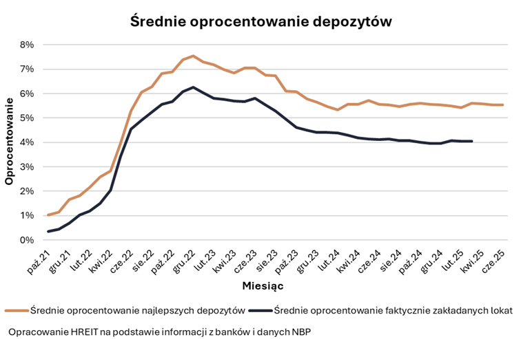 Z danych HREIT wynika, że w maju średnie oprocentowanie promocyjnych lokat i kont oszczędnościowych wyniosło około 5,5 proc. Jeszcze w marcu i kwietniu było to 5,6 proc.