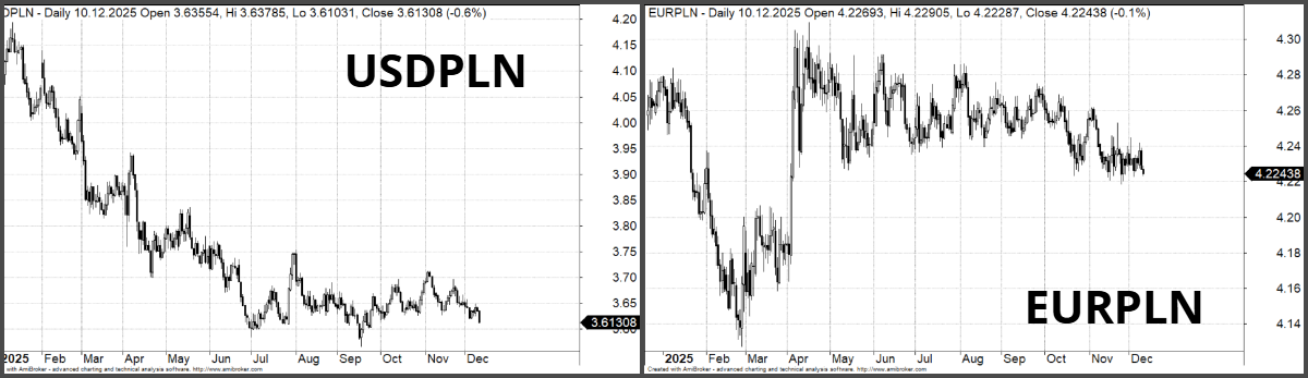 Na wczorajszym posiedzeniu Fed obniżył stopy procentowe o 25 pb., do poziomu 3,50–3,75 pb., co uzasadniono reakcją na słabe dane z rynku pracy. To właśnie słabnący rynek pracy oraz zakończenie kadencji Jerome’a Powella na stanowisku szefa Fed mogą stanowić nowe wyzwania dla polityki pieniężnej Polski w 2026 roku. Już w maju 2026 kończy się druga kadencja obecnego prezesa Fed, Jerome’a Powella. Prezydent Donald Trump powoła na to stanowisko swojego kandydata, który będzie realizował politykę zbieżną z jego wizją – zdecydowanie bardziej gołębią niż aktualny szef Fed. To może wywierać dalszą presję na dolara oraz rynki finansowe.
