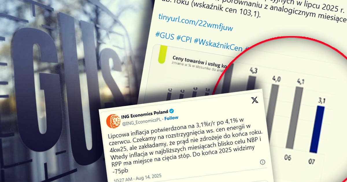 Główny Urząd Statystyczny opublikował wskaźnik cen towarów i usług konsumpcyjnych w lipcu 2025 roku. Wstępne dane zostały potwierdzone, inflacja w górnej granicy celu NBP.