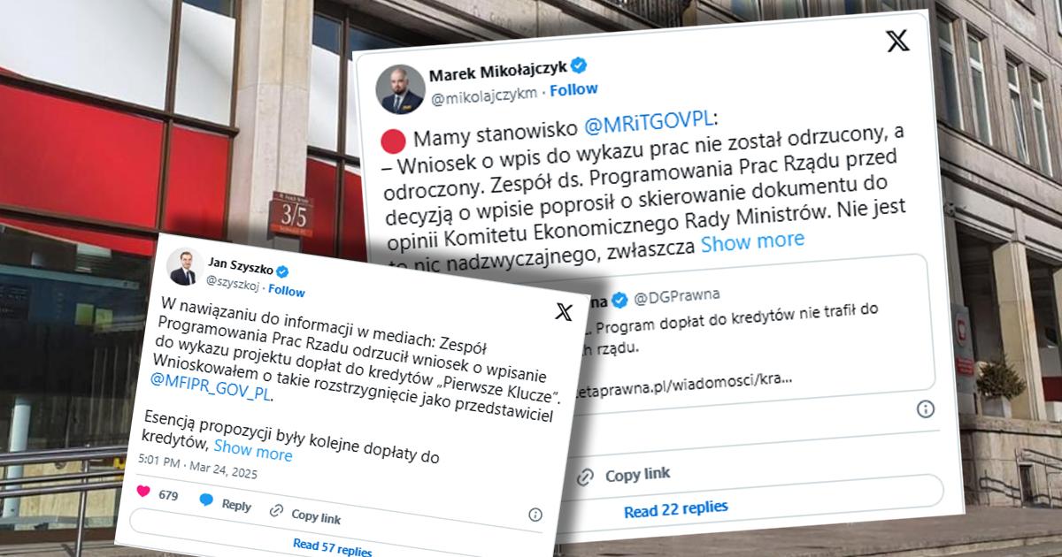 Od wczoraj głośno o rzekomym odrzuceniu wniosku o wypisanie projektu ustawy Pierwsze Klucze do wykazu prac legislacyjnych. O sytuacji poinformował wiceminister funduszy Jan Szyszko za pośrednictwem platformy X.