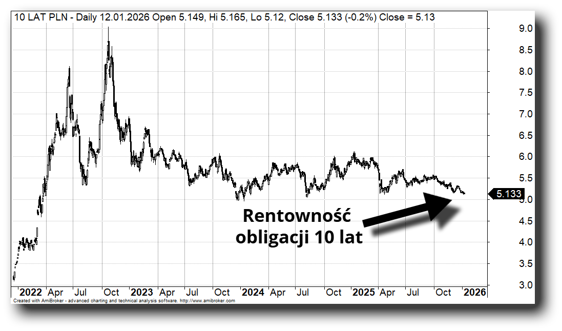 Kolejnym sygnałem z rynku jest spadek rentowności obligacji skarbowych. Rentowność rynkowych 10-letnich papierów wynosi obecnie około 5,13 proc. Jednocześnie Ministerstwo Finansów w ostatnich miesiącach kilkukrotnie obniżyło oprocentowanie detalicznych papierów wartościowych. W styczniowej ofercie 10-letnie obligacje dają 5,6 proc. w pierwszym roku oszczędzania, a w kolejnych latach oprocentowanie równe jest inflacji, powiększonej o stałą marżę 2,00 proc.