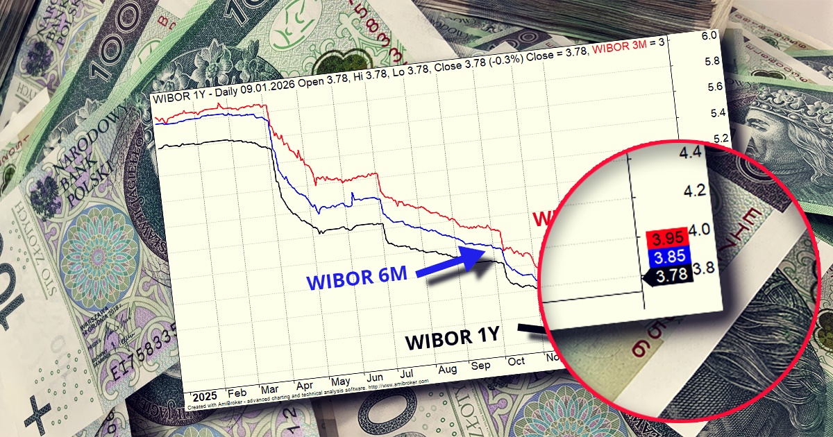 Najważniejsze indeksy wykorzystywane przy obliczaniu rat kredytów w Polsce, spadają. Od grudnia WIBOR-y 3M i 6M zjechały poniżej 4 proc. Obecnie wynoszą kolejno 3,95 proc. oraz 3,85 proc. Najniżej znajduje się WIBOR 1Y, którego notowania są na poziomie 3,78 proc.