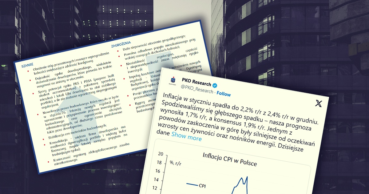 Po stronie popytu stoją minione obniżki stóp procentowych, ale również oczekiwania na kolejne, w nadchodzących miesiącach. Pierwsze obniżki oczekiwane są już od marca. Do takiego ruchu może skłonić Radę Polityki Pieniężnej (RPP) ostatni odczyt inflacji, szacunek GUS pokazał w styczniu 2,2 proc. Choć to dane jeszcze zostaną zaktualizowane pod kątem nowego koszyka inflacyjnego, to powrót inflacji do celu wydaje się trwały.