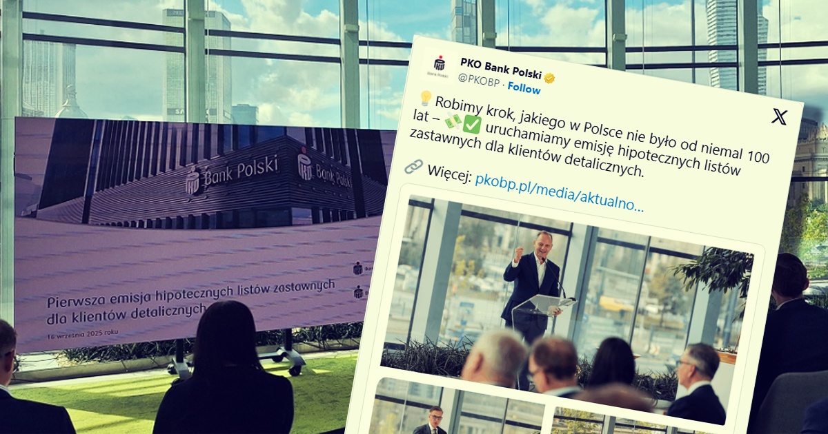 Bank Hipoteczny PKO wyemituje 3-letnie listy zastawne o łącznej wartości 1 mld zł. Oferta będzie skierowana do klientów detalicznych – dotychczas tego rodzaju papiery były dostępne wyłącznie dla inwestorów instytucjonalnych. Zapisy potrwają od 1 do 21 października 2025 roku.