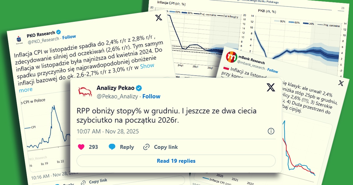 Inflacja w listopadzie pokazała wynik poniżej konsensusu – wzrost cen r/r wyniósł 2,4 proc. To znacznie zwiększa szanse na obniżkę stóp procentowych w grudniu.