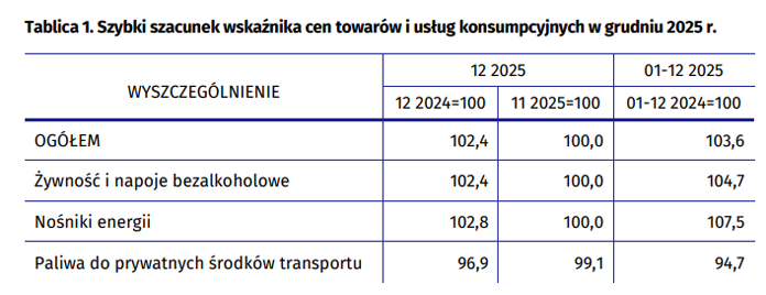 GUS opublikował wstępny odczyt inflacji za grudzień, zgodnie z którym wskaźnik wyniósł 2,4 proc. Już listopadowe dane pokazywały, że zeszliśmy do celu – 2,5 proc. Jeszcze w październiku było 2,8 proc.
