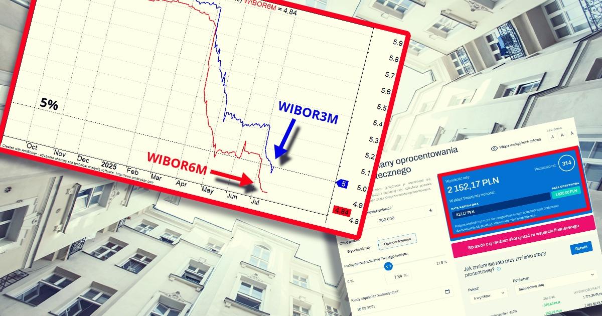 WIBOR 6M z początkiem lipca spadł poniżej 5 proc. To oznacza niższe raty kredytów w kolejnych miesiącach.