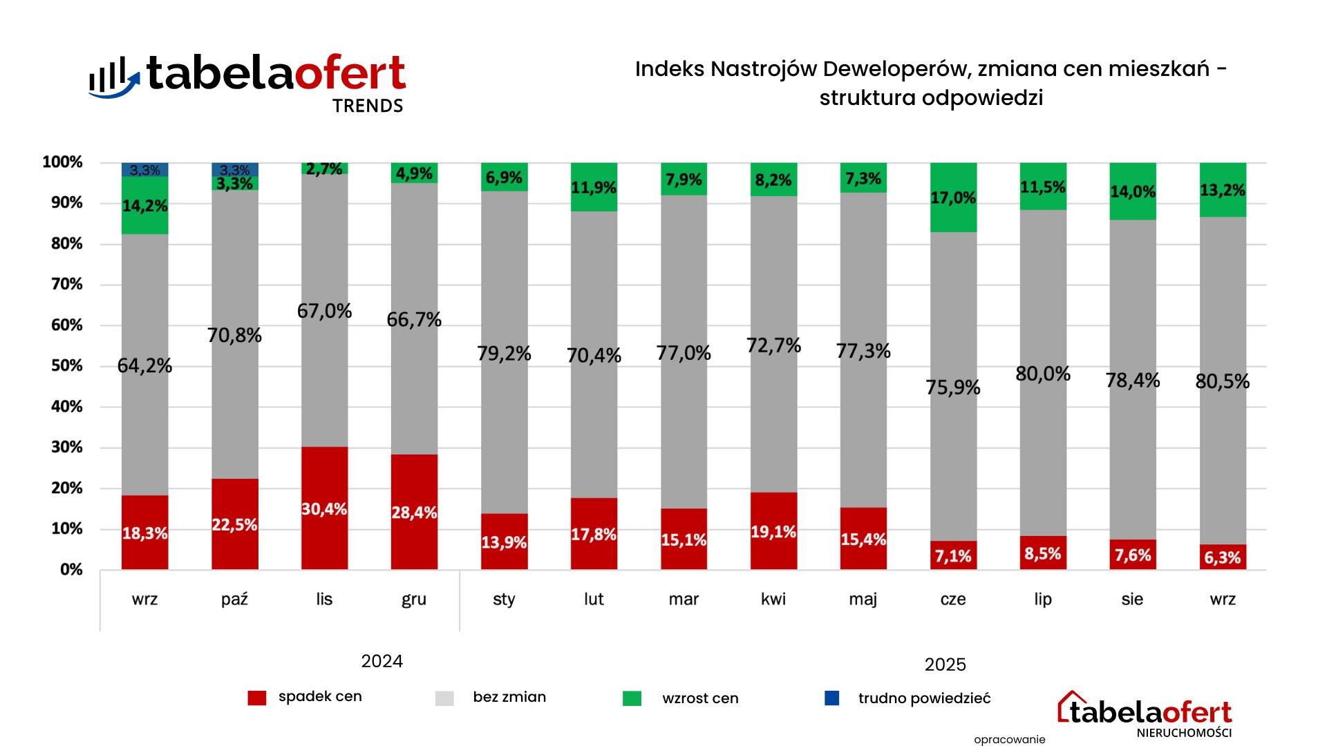 We wrześniu mieliśmy do czynienia z większą liczbą korekt cenowych – to efekt wejścia w życie ustawy o jawności cen mieszkań, która zobowiązuje firmy do raportowania zmian w oficjalnych cennikach. Nowe regulacje sprawiły, że dziś każda zmiana jest bardziej przemyślana i mniej impulsywna