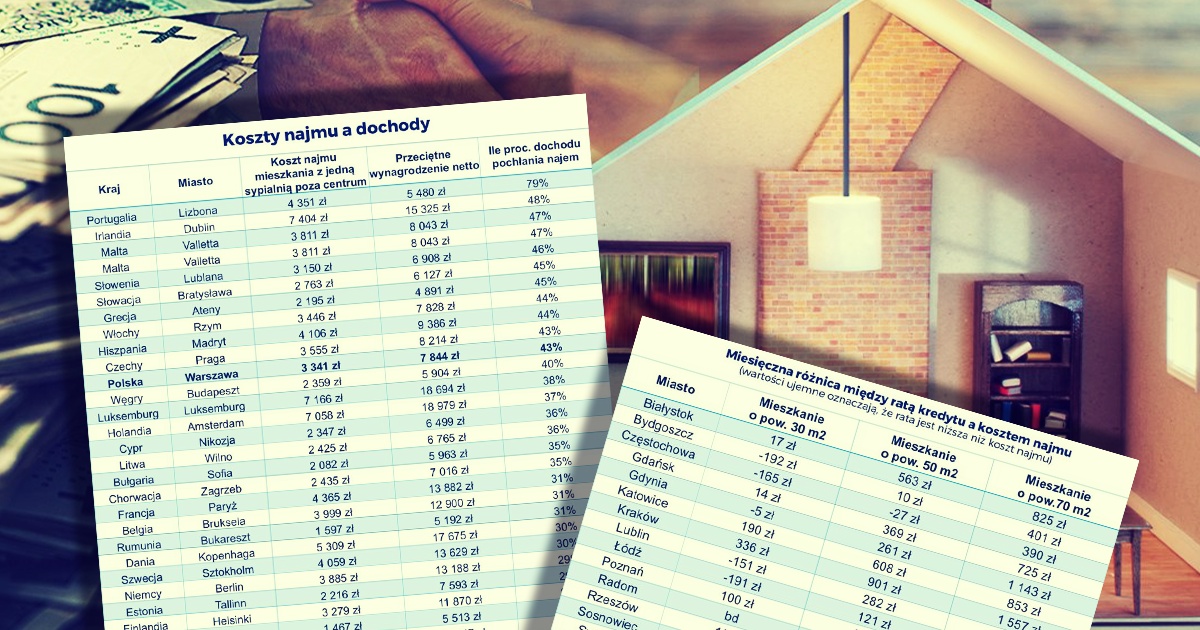 Dane Rentier.io sprawdziły, jak wypadają stawki najmu na tle średnich wynagrodzeń. W Warszawie najem pochłania przeciętnie 43 proc. dochodu netto. Sytuacja jest niekorzystna, porównywalna do Pragi czy Madrytu. Na tle całej Europy Warszawa zajęła 18 miejsce na 27 badanych miast. Średnia dla krajów UE wynosi 38 proc.