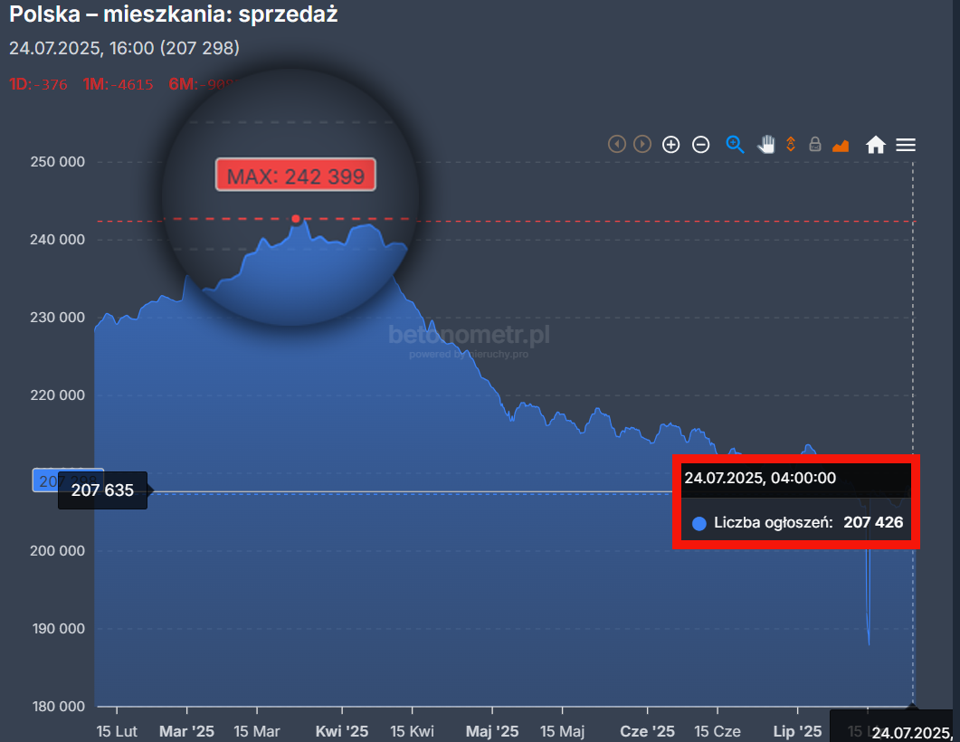 Podsumowując, wysoka dostępność ofert i stabilizacja cen sprzyjają powrotowi kupujących na rynek. Choć pojedyncze sygnały nie przesądzają jeszcze o pełnym ożywieniu, to zbieżność kilku pozytywnych czynników sugeruje, że popyt dopiero zaczyna nabierać tempa. I co istotne, dzieje się to bez wsparcia w postaci rządowych programów dopłat do kredytów mieszkaniowych.