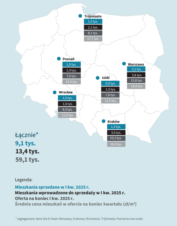 Źródło: Rynek mieszkaniowy w Polsce I kwartał 2025, JLL