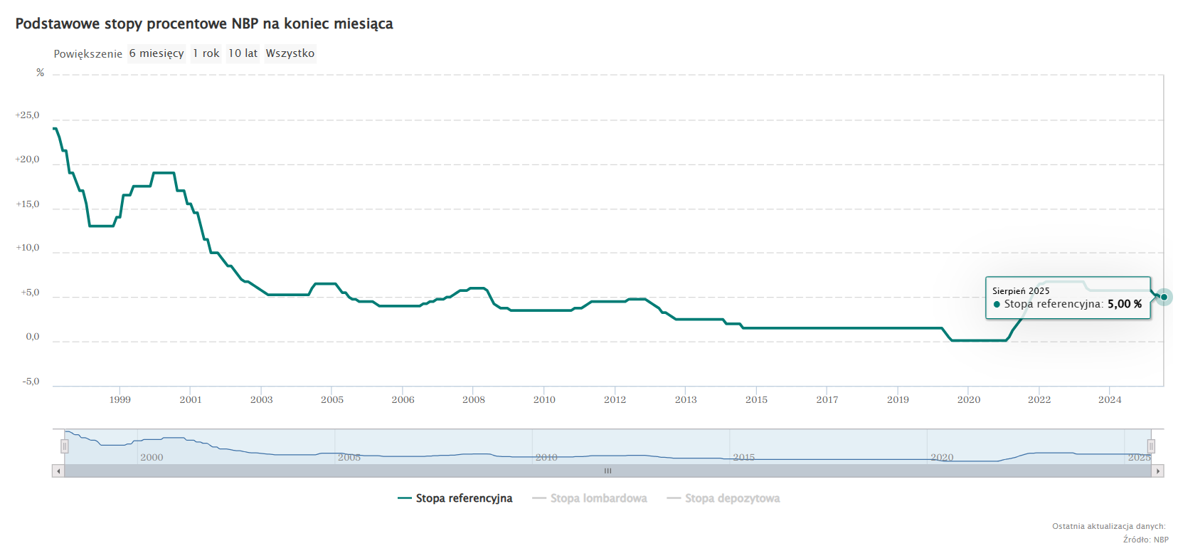 Również otoczenie gospodarcze sugeruje nadchodzące ożywienie. Jednym z kluczowych czynników jest polityka pieniężna. Rada Polityki Pieniężnej w tym roku dwukrotnie obniżyła stopy procentowe – w maju o 0,50 pkt proc., a w lipcu o kolejne 0,25 pkt proc. Obecnie stopa referencyjna NBP wynosi 5,0 proc.