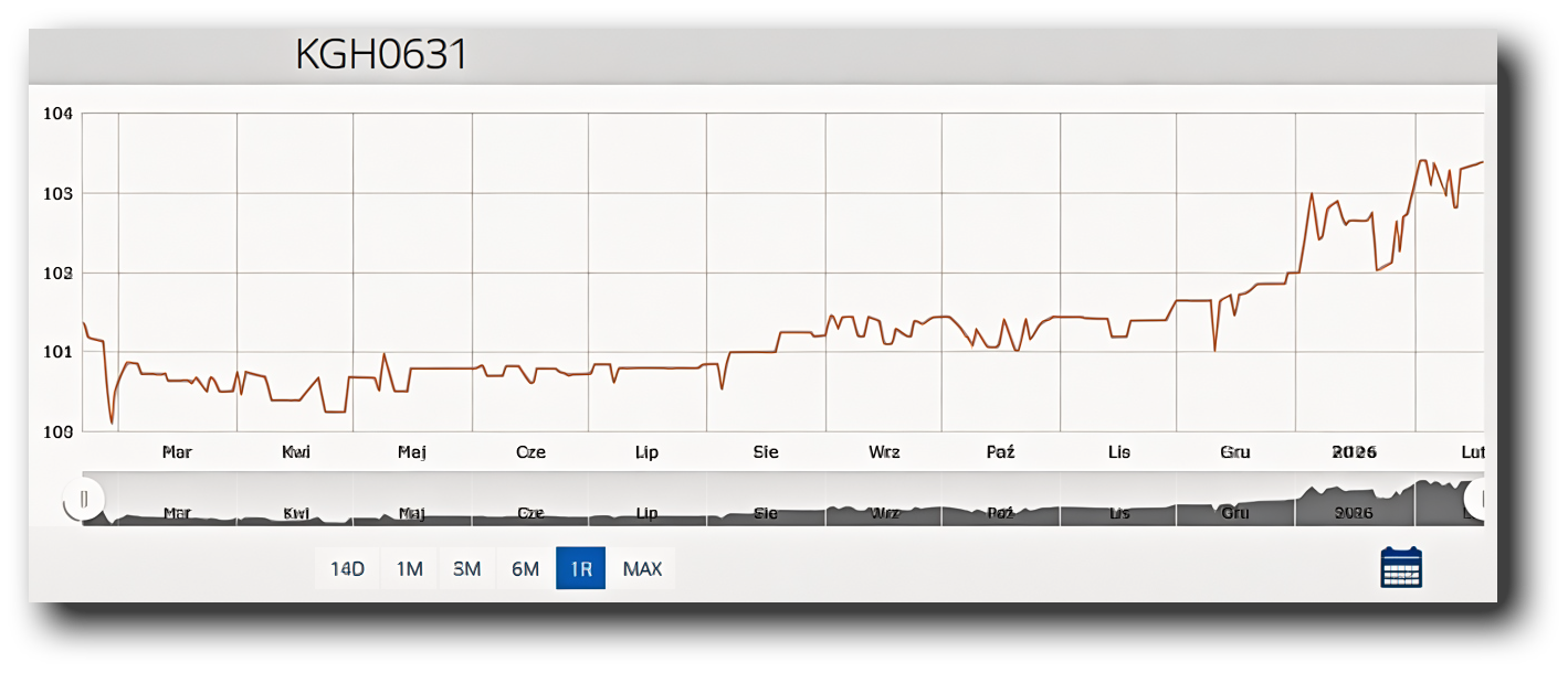Poprzednią emisję długu, serii C, spółka przeprowadziła w czerwcu 2024 r. Oferta miała wartość 1 mld zł, a konstrukcja oprocentowania była podobna, przy czym marża była wyższa o 25 pb. Obligacje tej serii, notowane pod nazwą KGH0631, znajdują się w obrocie na Catalyst od września 2024 r.