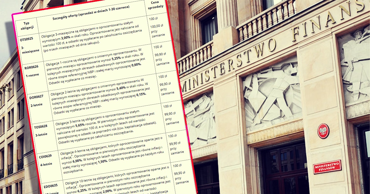 Ministerstwo Finansów opublikowało czerwcową ofertę obligacji Skarbu Państwa. Po dostosowaniu emisji do warunków rynkowych oprocentowanie spadło.