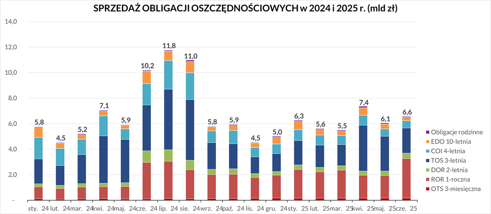 Łącznie w czerwcu MF sprzedało obligacje oszczędnościowe o wartości 6,564 mln zł.