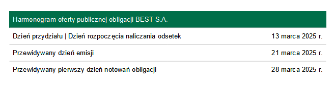 Pierwsza emisja obligacji Grupy BEST w tym roku zakończona redukcją