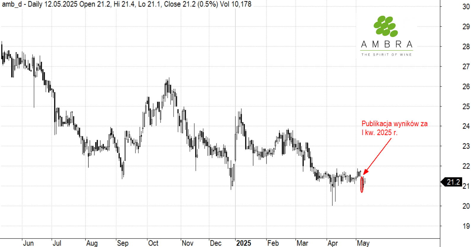 Wyniki Grupy Ambra za pierwszy kwartał kalendarzowy 2025 roku (będący trzecim kwartałem roku obrotowego spółki) były słabsze niż rok wcześniej. Częściowo wynikało to z efektów sezonowości. Na spadek sprzedaży wpłynęły przede wszystkim przesunięcie Świąt Wielkanocnych na kwiecień oraz wyższy poziom zapasów produktów Ambry w sklepach po okresie świątecznym.