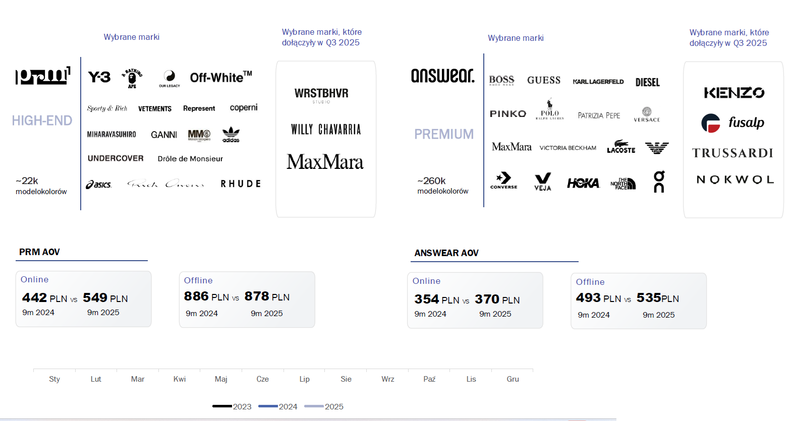 Spółka wskazuje, że dobre wyniki są efektem „monetyzowania zmian”, w tym repozycjonowania Answeara do segmentu premium i rozwoju nowej marki PRM w segmencie luxury, a także konsekwentnego wzmacniania oferty nowymi markami oraz optymalizacji asortymentu.