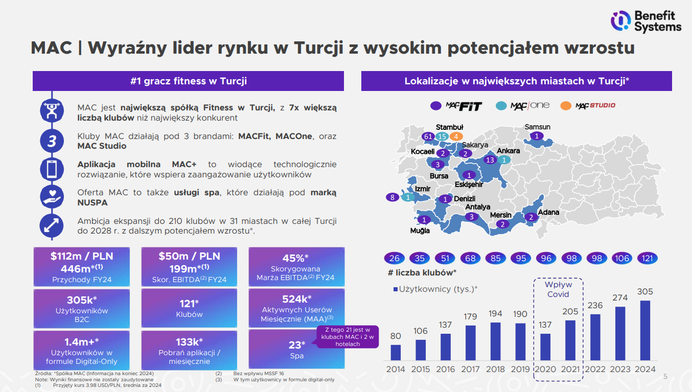 "Akwizycja grupy MAC, która ma silną pozycję i prowadzi obiekty sportowe w ramach trzech popularnych sieci fitness w Turcji, to największe w historii naszej spółki przejęcie, które niewątpliwie wzmocni naszą pozycję na tym rynku i znacząco wzbogaci ofertę programu MultiSport” komentuje przejęcie Marcin Fojudzki, członek zarządu Benefit Systemu odpowiedzialny za finanse.