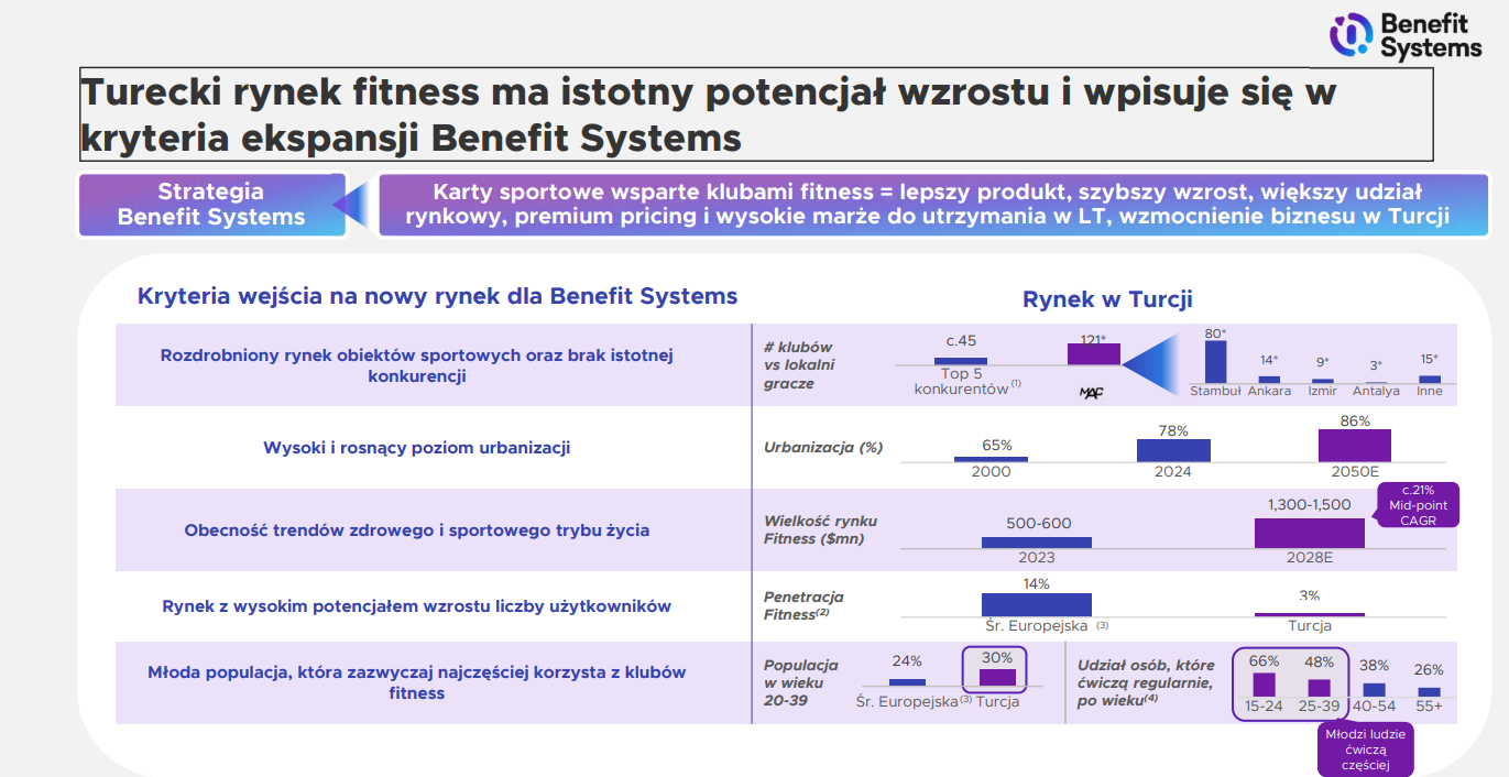 Giełdowa firma, argumentując akwizycję, wskazuje przede wszystkim na dogodną lokalizację przejmowanych klubów w największych tureckich miastach, których populacja ciągle rośnie. Co więcej, rozwojowi na tym rynku sprzyjać ma m.in. wysokie rozdrobnienie oraz młoda populacja, statystycznie częściej korzystająca z klubów fitness.