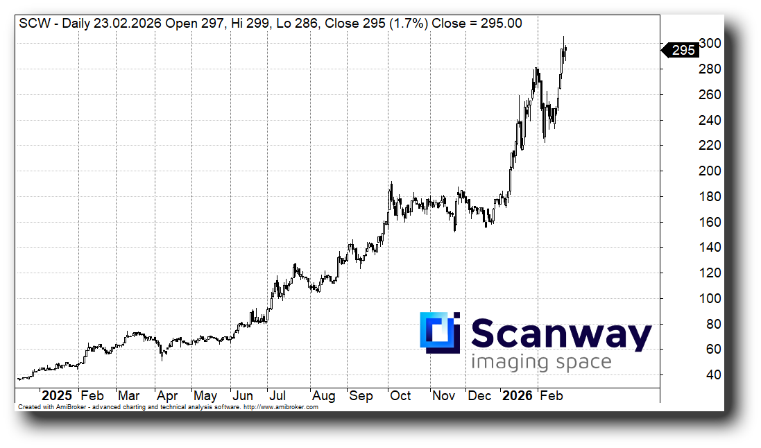 W styczniu tego roku Scanway ogłosił umowę z klientem z USA na dostawę nowej klasy instrumentów optycznych oraz sprzedaż danych satelitarnych w modelu Data-as-a-Service (DaaS). Umowa ta – obok współpracy z amerykańskim Intuitive Machines, światowym liderem komercyjnej eksploracji Księżyca – wspiera plany szerszej ekspozycji spółki na rynku amerykańskim.