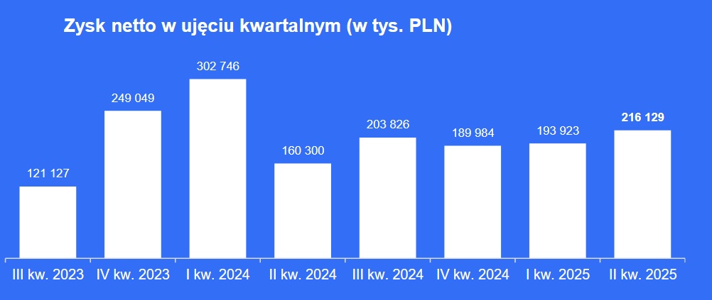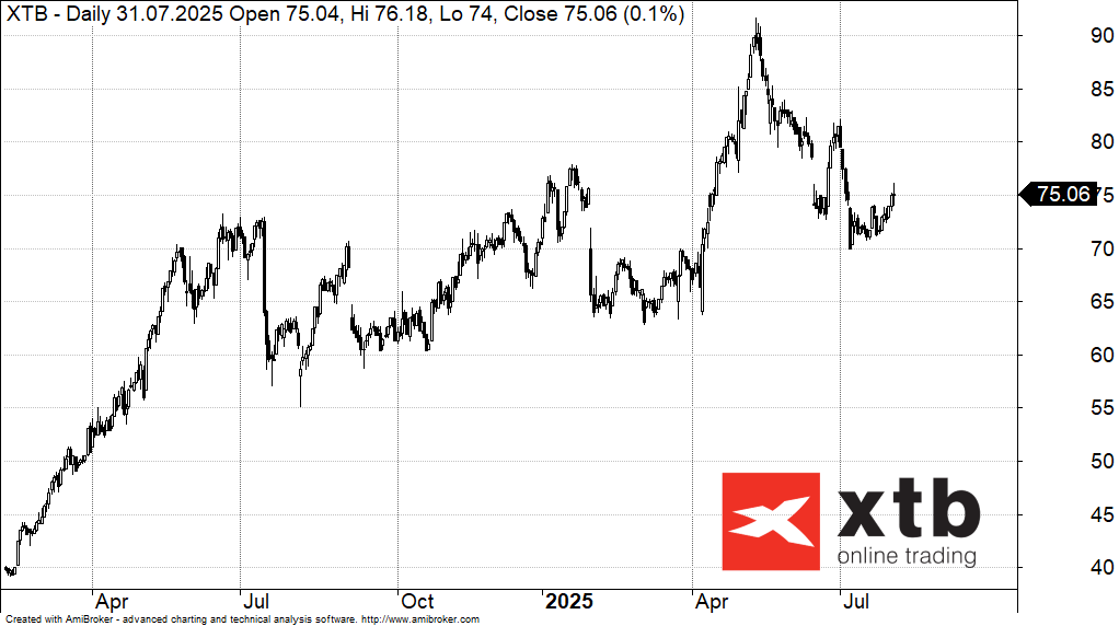 XTB poinformowało o wynikach za 2 kwartał 2025. W drugim kwartale spółka poinformowała o 580 mln zł przychodu i 216 mln zł zysku netto. Obydwa parametry wypadły poniżej oczekiwań analityków, którzy ze względu na zmienność rynkową jaka panowała na rynku w drugim kwartale mieli wyższe oczekiwania.