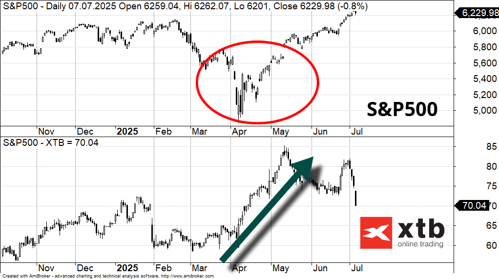 Kolejnym czynnikiem, który pogorszył nastroje wokół XTB, są szacunkowe wyniki platformy Plus500 – spółki, która w przeszłości była często traktowana jako dobry prognostyk dla wyników polskiego brokera. Plus500 poinformowało na londyńskiej giełdzie, że jej przychody w II kwartale 2025 roku wzrosły rok do roku o 15%, a EBITDA o 12%. Jednak w całym pierwszym półroczu dynamika przychodów wyniosła zaledwie 4%, a marża EBITDA wzrosła tylko o 1%. Jak na okres obejmujący rekordową zmienność związaną z cłami Donalda Trumpa, są to wyniki niesatysfakcjonujące – i dlatego odebrane negatywnie przez rynek.